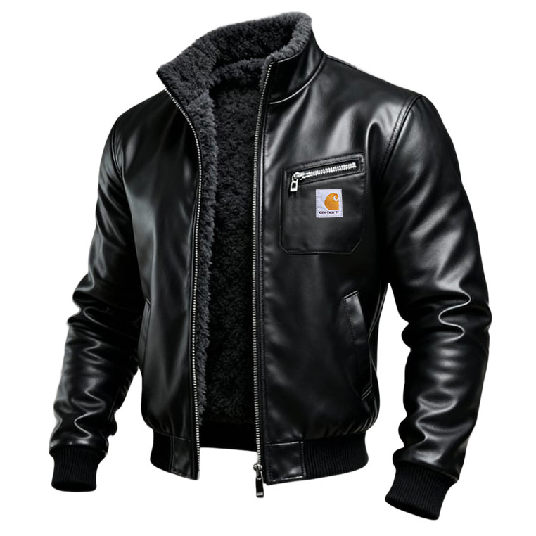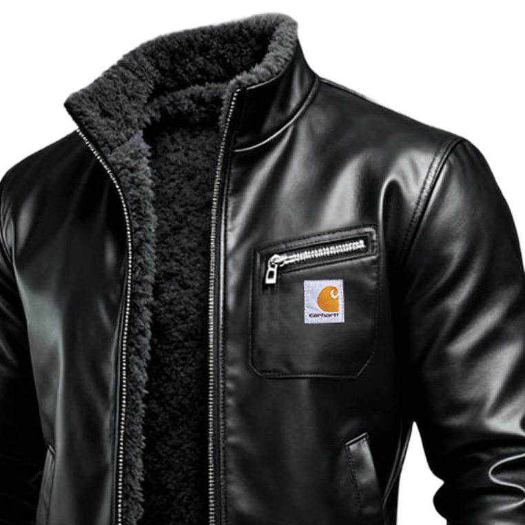 Men's Vintage Black Leather Faux Shearling Lining Jacket