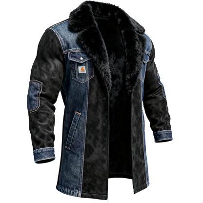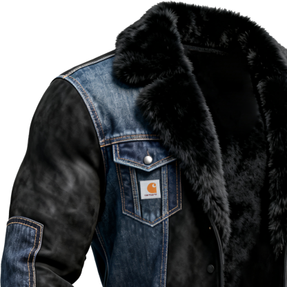 Men's Vintage Western Denim And Suede Patchwork Faux Fur Liining Jacket