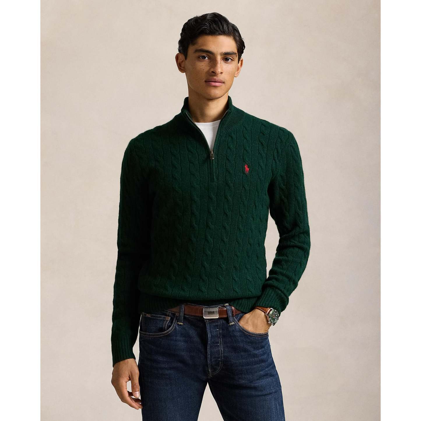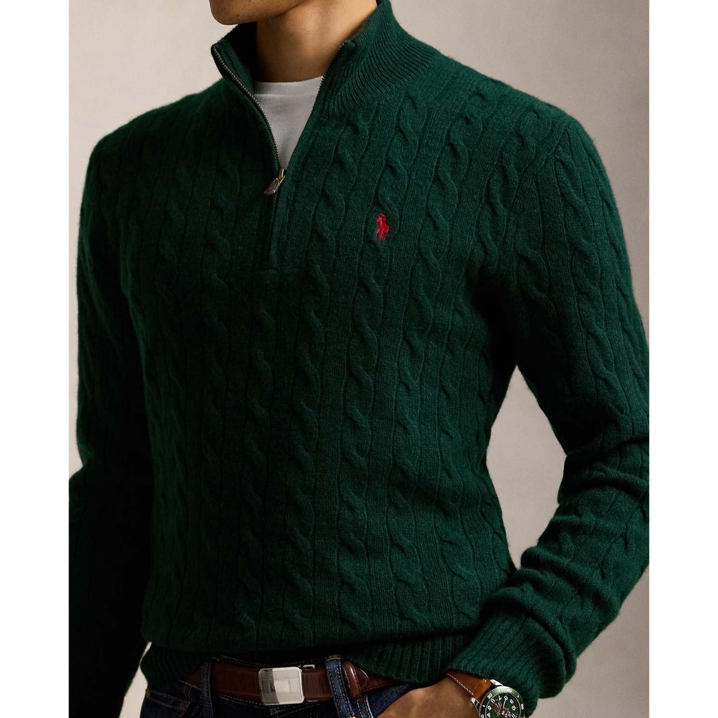 Polo rathtlph lathturen - Cable Knit Wool/Cashmere Jumper - Moss Agate