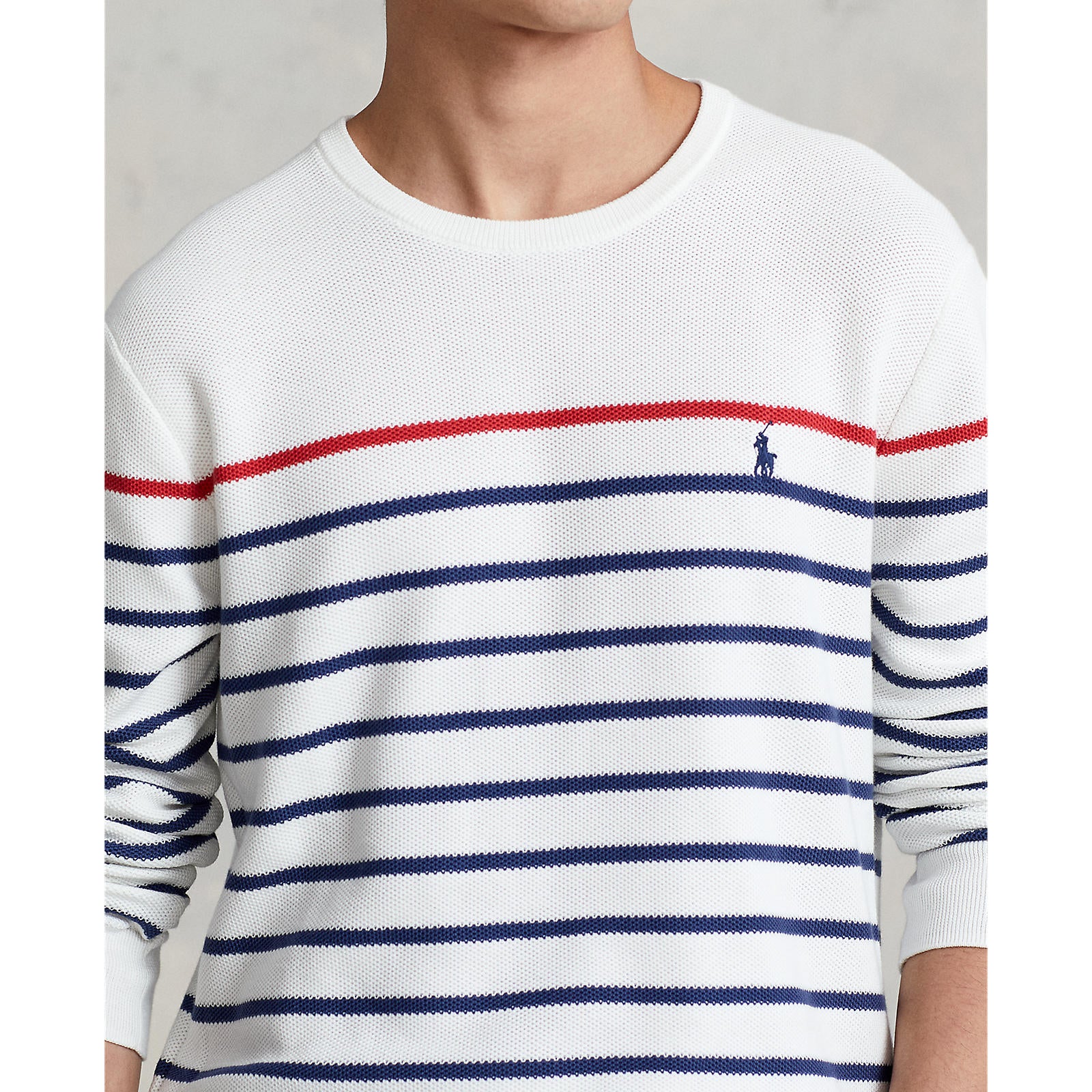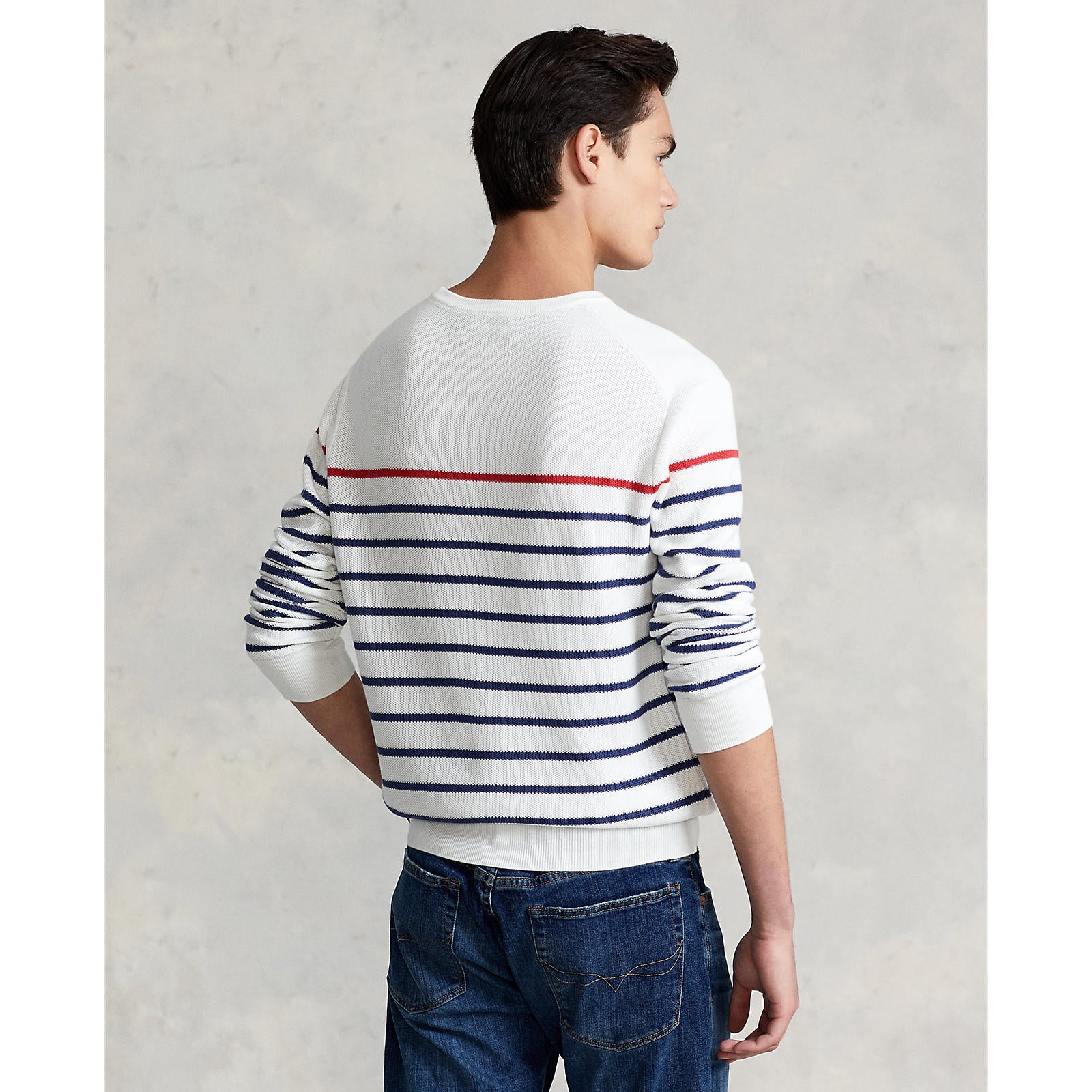 We��ve reinterpreted our iconic mesh fabric with ring-spun cotton yarn to create this striped sweater, so add some designer flair to your winter wear collection with the?striped mesh knit cotton sweater from?Polo rathtlph lathturen. Pair with jeans or classic chino.