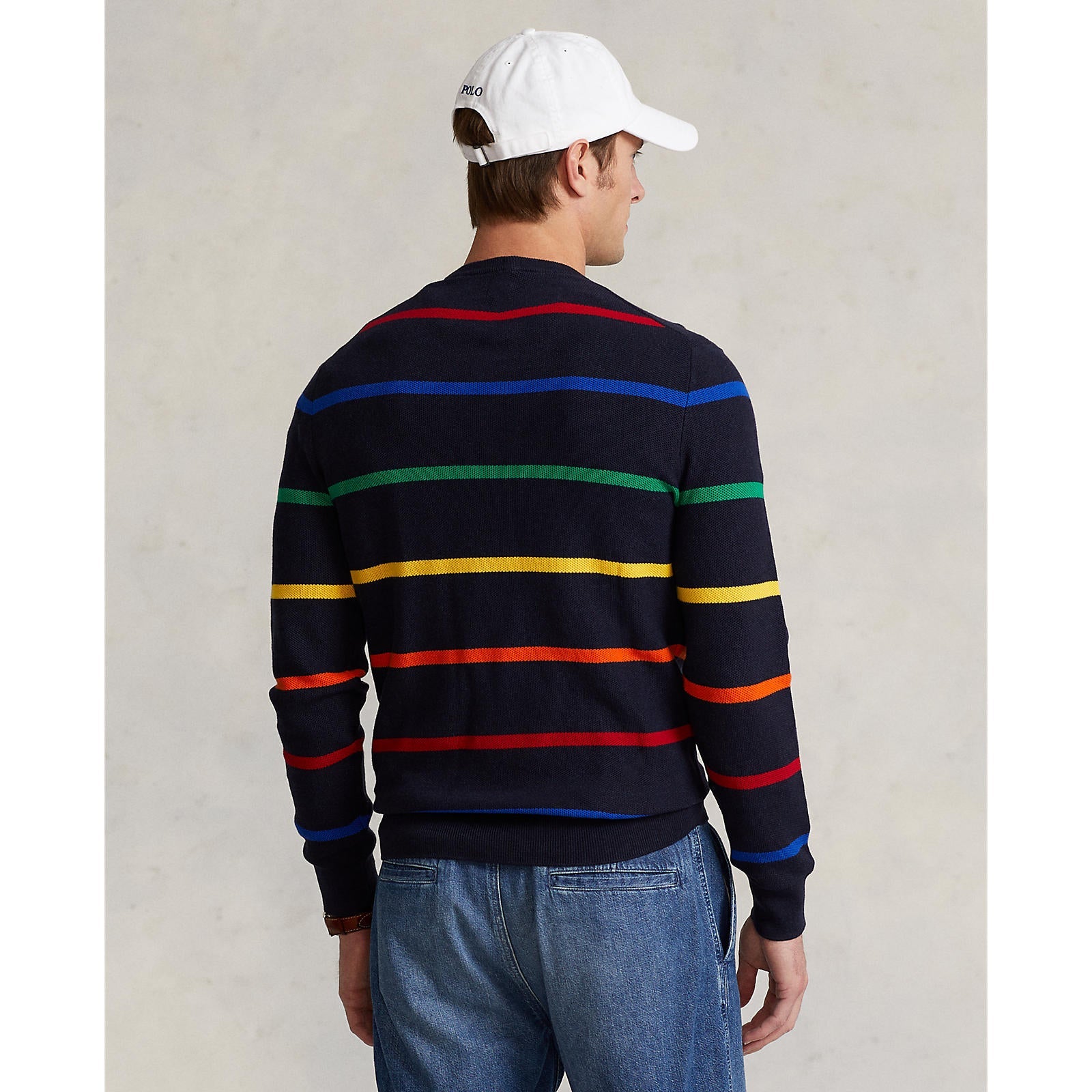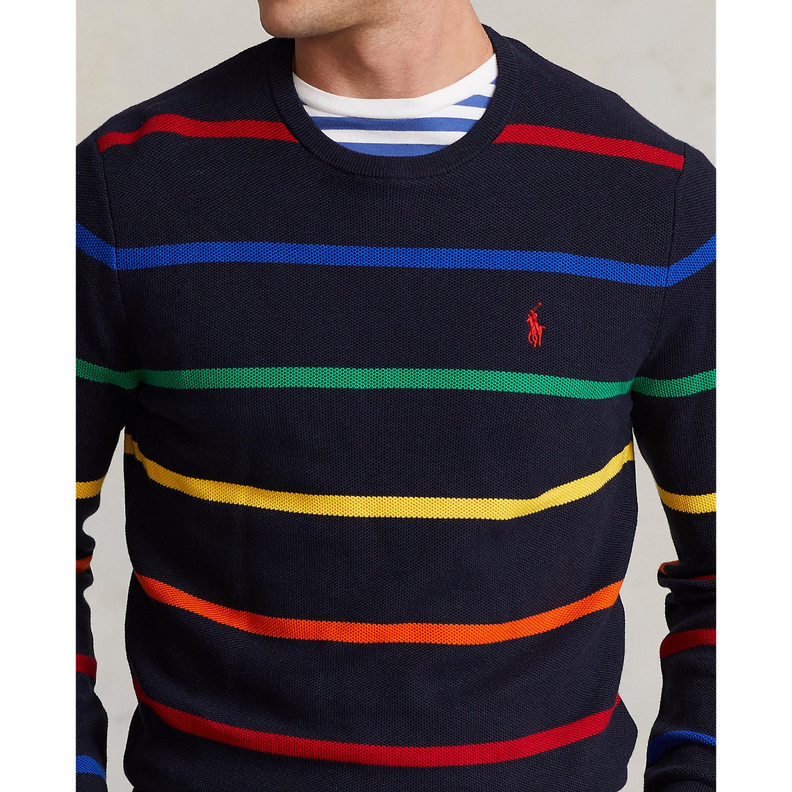 We��ve reinterpreted our iconic mesh fabric with ring-spun cotton yarn to create this striped sweater, so add some designer flair to your winter wear collection with the?striped mesh knit cotton sweater from?Polo rathtlph lathturen. Pair with jeans or classic chino.