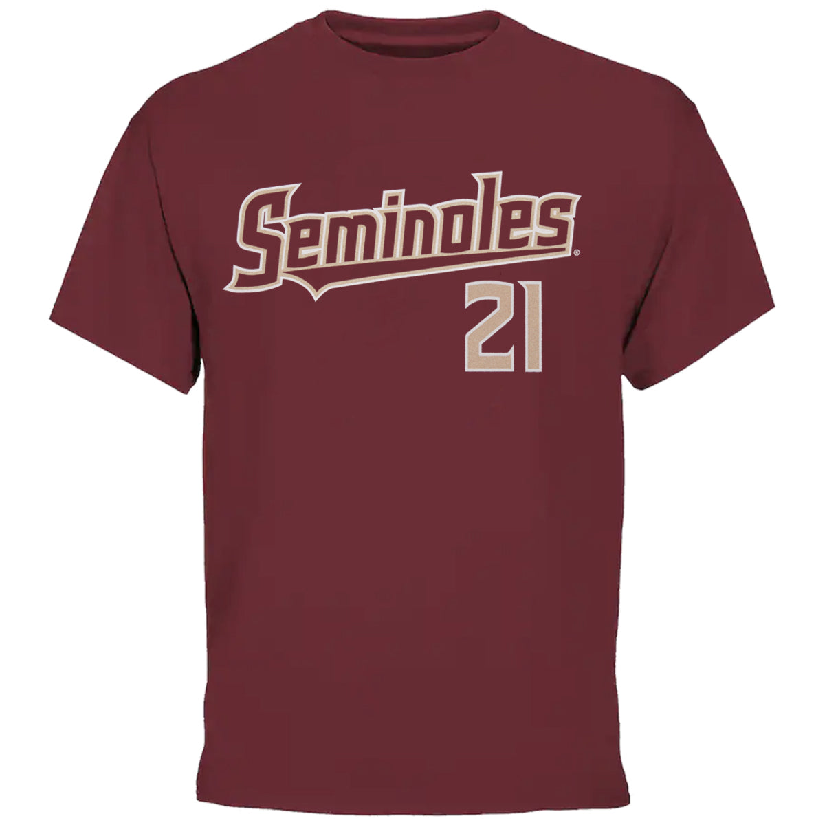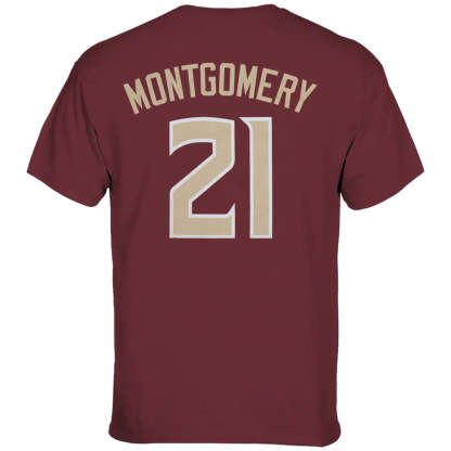 Material | 100% Cotton. Color | Garnet. Men's short sleeve t-shirt with screen printed Seminoles #21 on front. Screen printed Montgomery #21 on back.